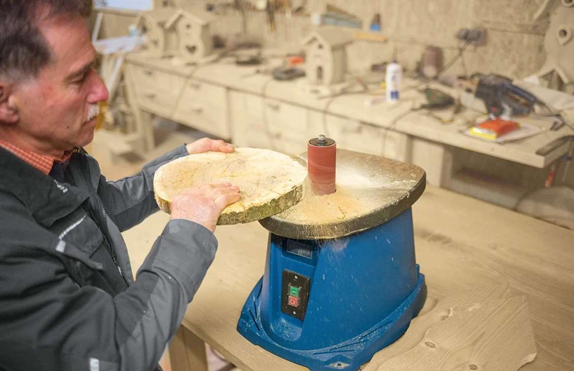 - Grande table robuste en fonte pour un maximum de précision et de stabilité même lors du ponçage de grandes pièces